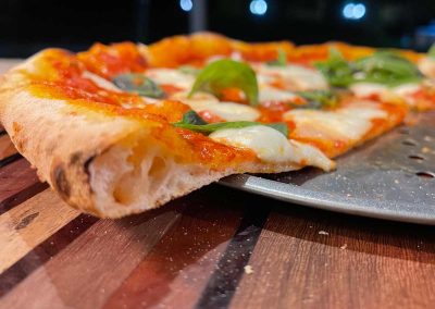 Usamos ingredientes frescos de la mejor calidad, en combinación con nuestro horno de leña clásico “Napolitano”, diseñado para una cocción óptima de aproximadamente 2 minutos, asegurando una textura, aroma y sabor auténticos logrando una fusión de pizza estilo napolitano con el famoso New York style.
