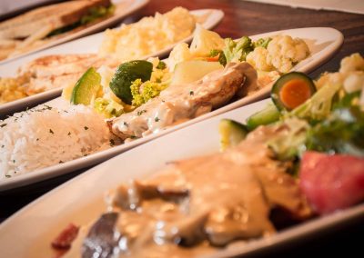 Contamos con un restaurante a la carta con un menú de comida nacional e internacional cuya elaboración cumple con las más estrictas normas de higiene y calidad.